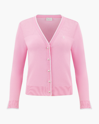 V Neck color scheme line cardigan (Pink)