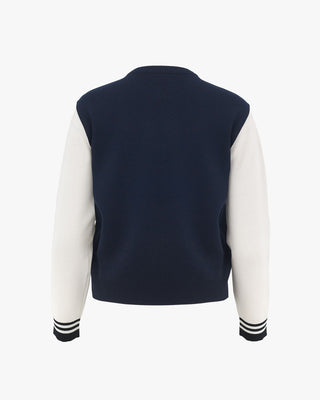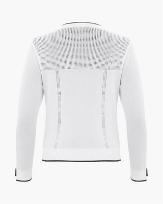 V Neck color scheme line cardigan (White)