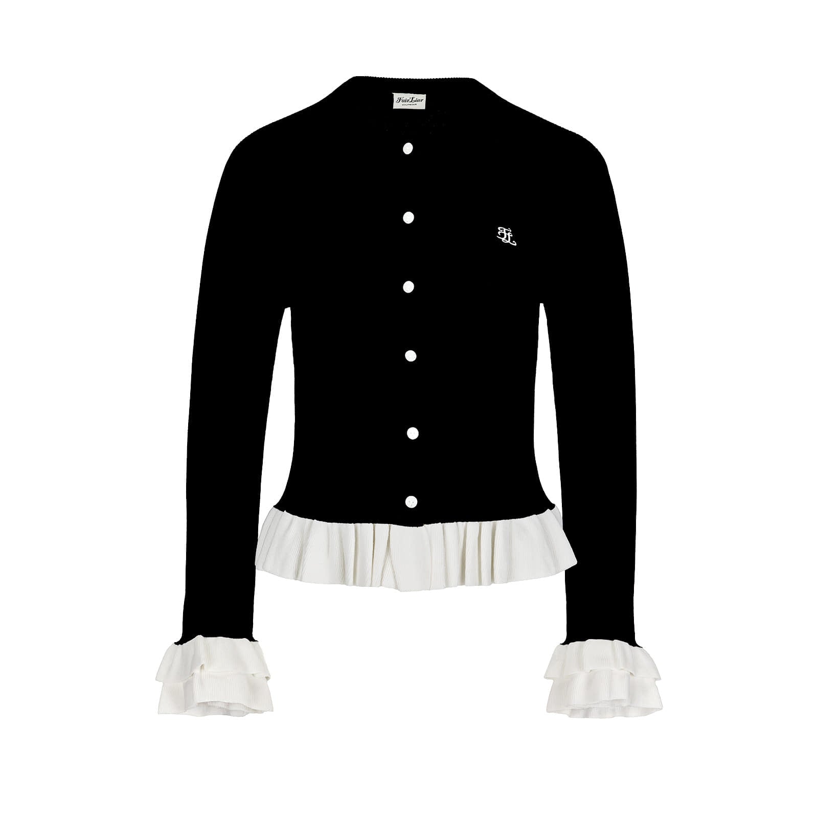 2. The slim-fitting design hugs the body, with ruffle details at the sleeves and hem ( ) for a feminine touch. This item combines simplicity with a charming, romantic vibe.