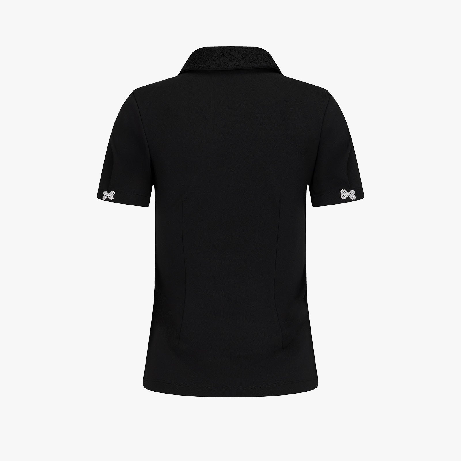 2. The lace-detail collar adds a feminine and delicate touch, while the pearl ribbon decoration on the back of the puff sleeves adds an elegant accent.