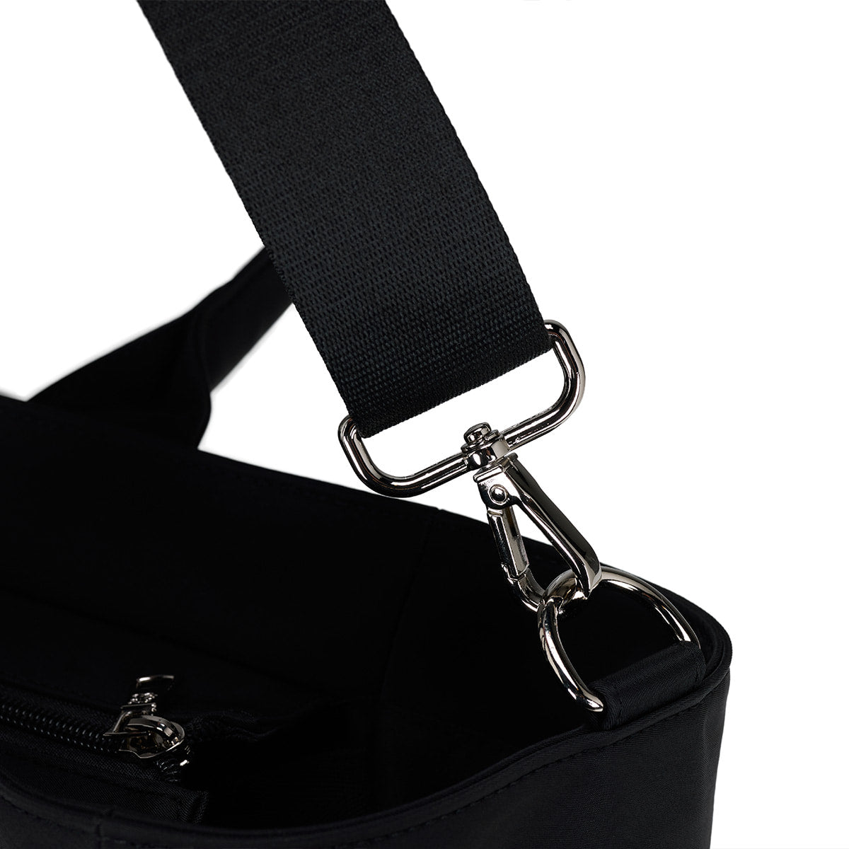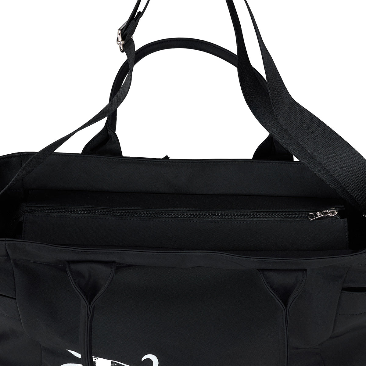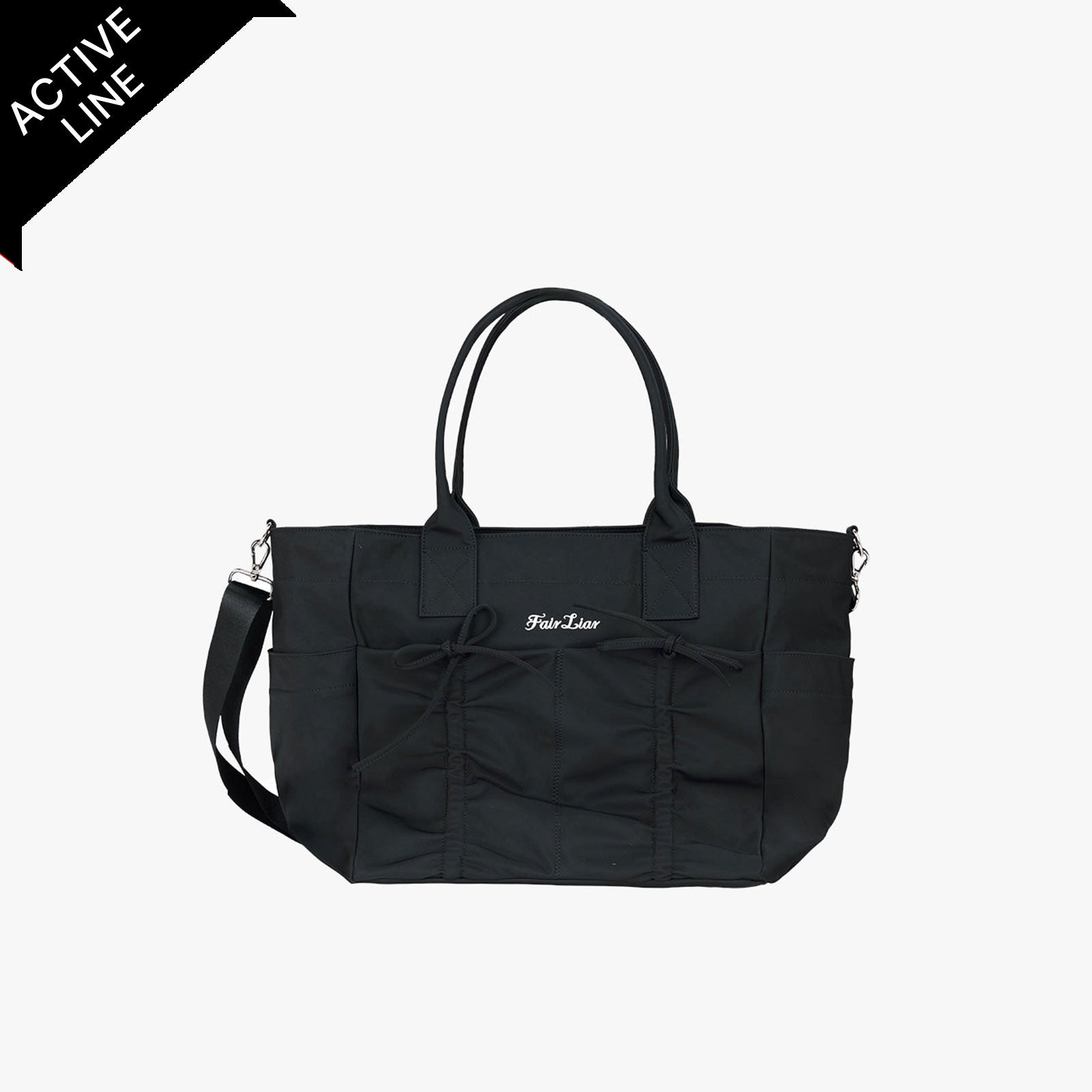 *Nylon padded bag with water-resistant lining *Pockets for easy storage *Features a feminine design with an organza ribbon shirring detail at the center