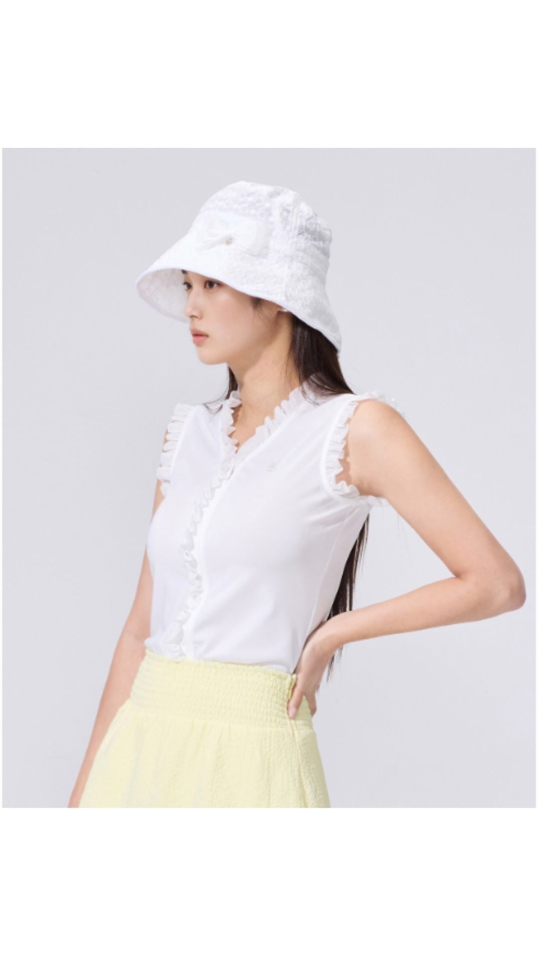 Lace Eyelet Bucket Hat (White)