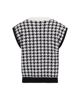 Houndstooth Checkered Knit Vest - Black
