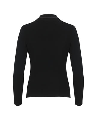 Leather Color Combination Collar Knit - Black