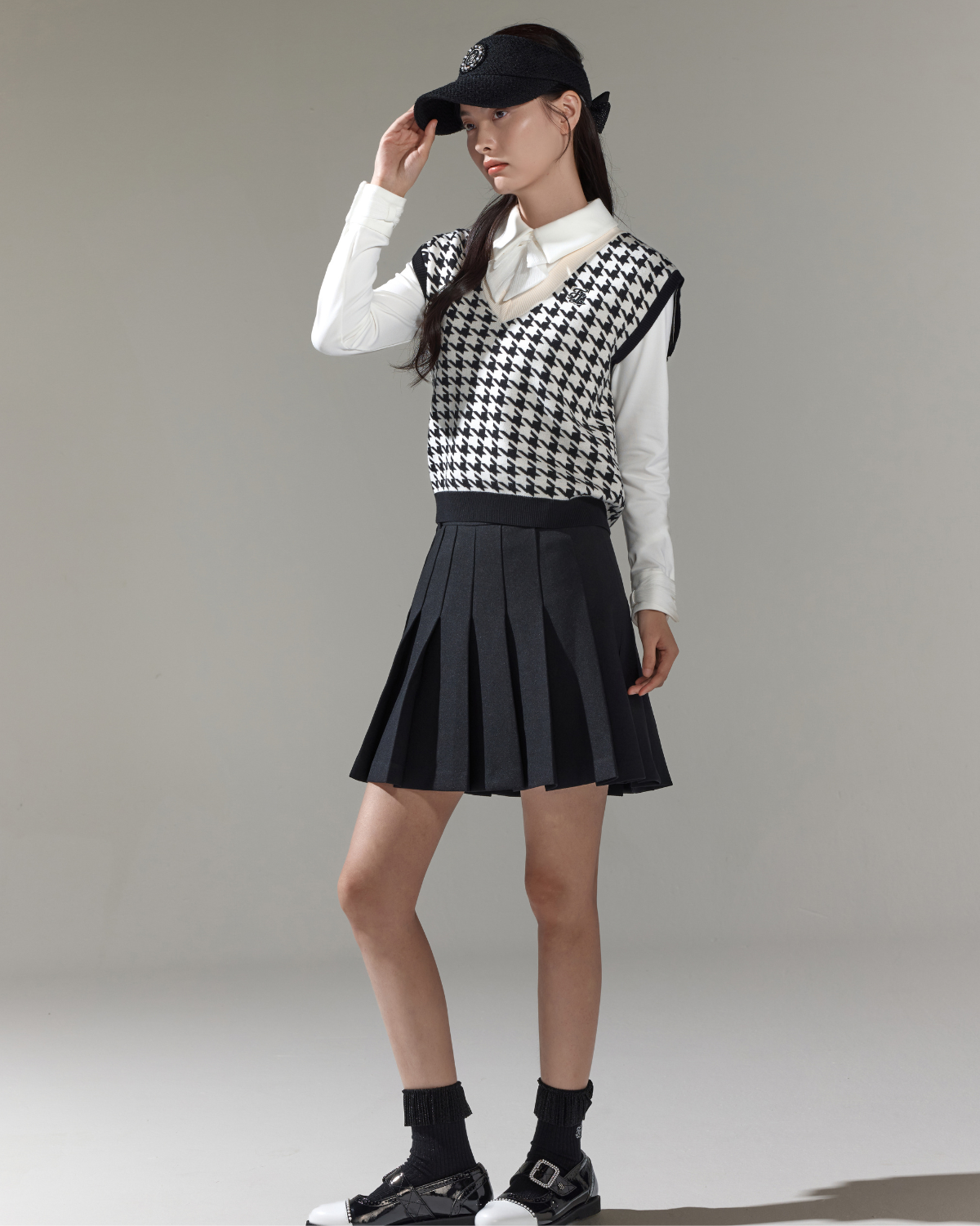 - Deep V-neck design, can be combined with various tops *Clean and sophisticated houndstooth pattern exterior allows for a luxurious field look * Set for men and women (FF4SL02M) * 2nd degree symbol logo volume straight embroidery