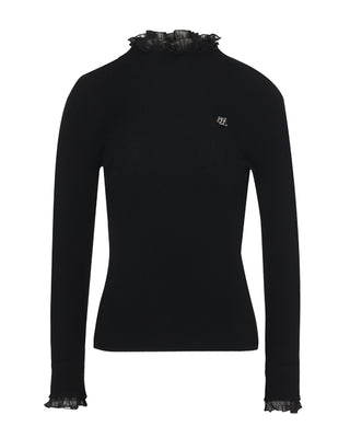 Flower Jacquard Open Ribbon Cardigan (Black)