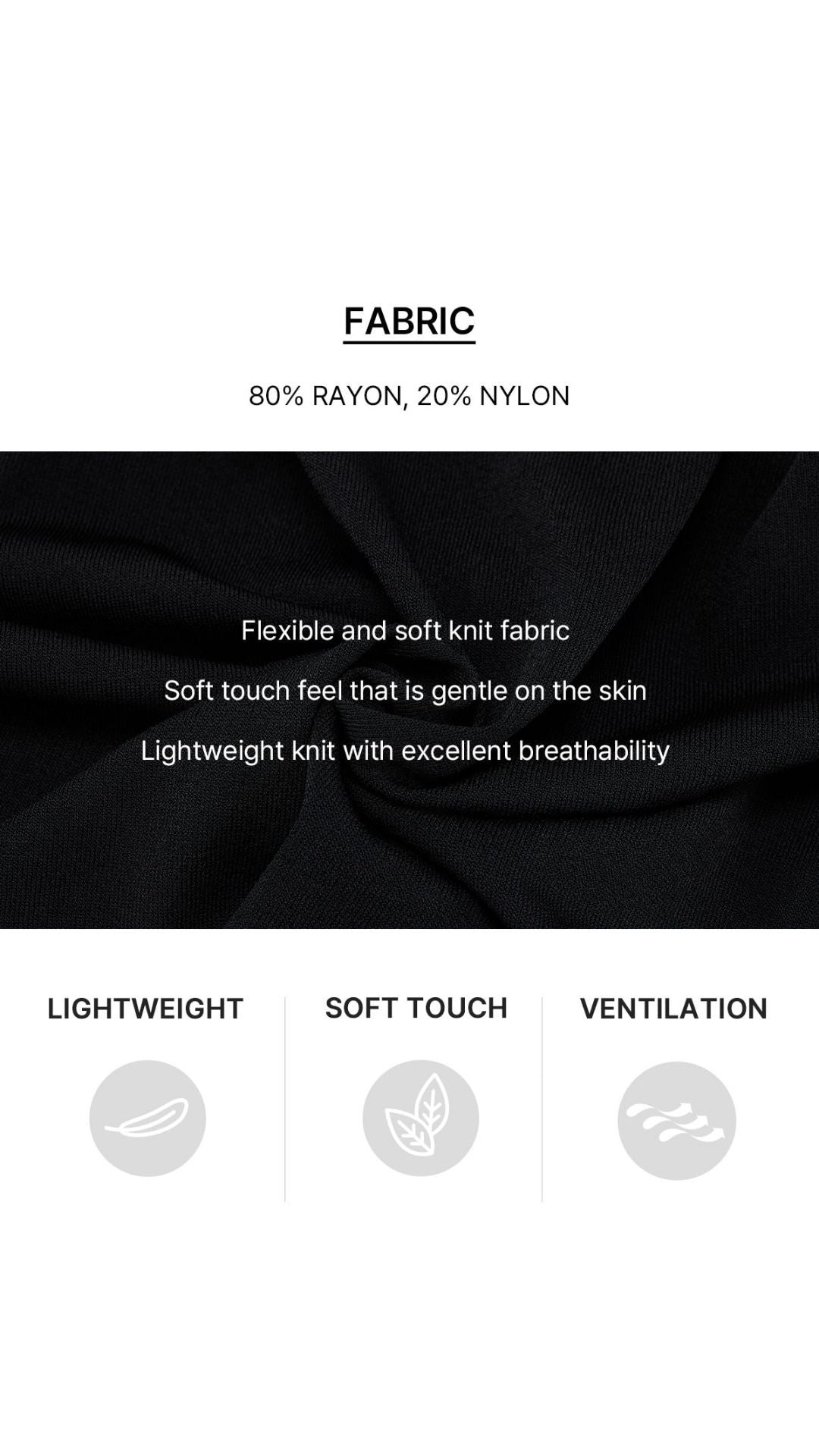1. Lightweight and flexible knit fabric makes this an ideal item for spring and summer seasons. Features a soft touch that feels comfortable on the skin.