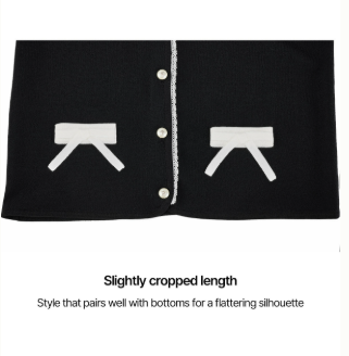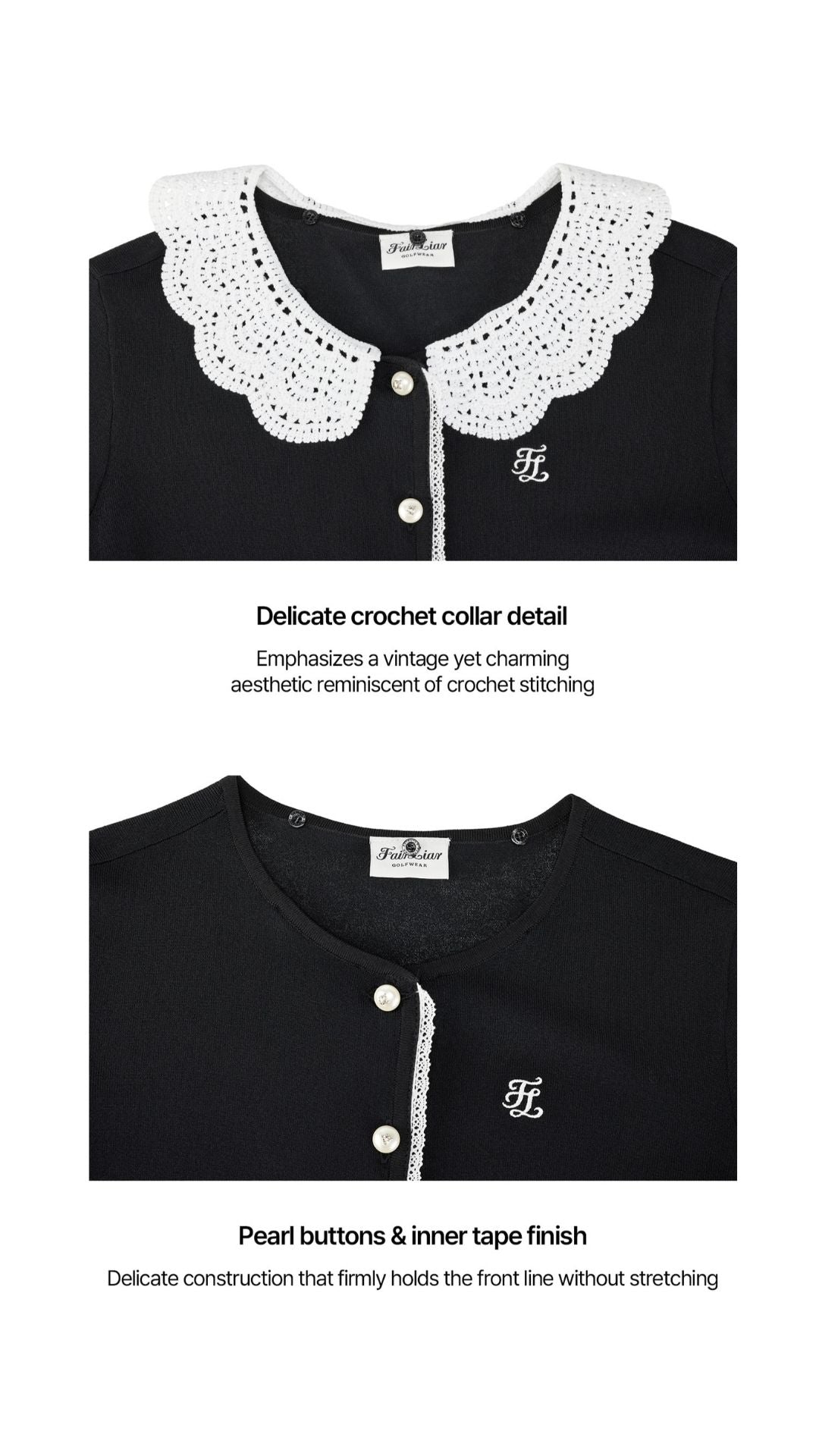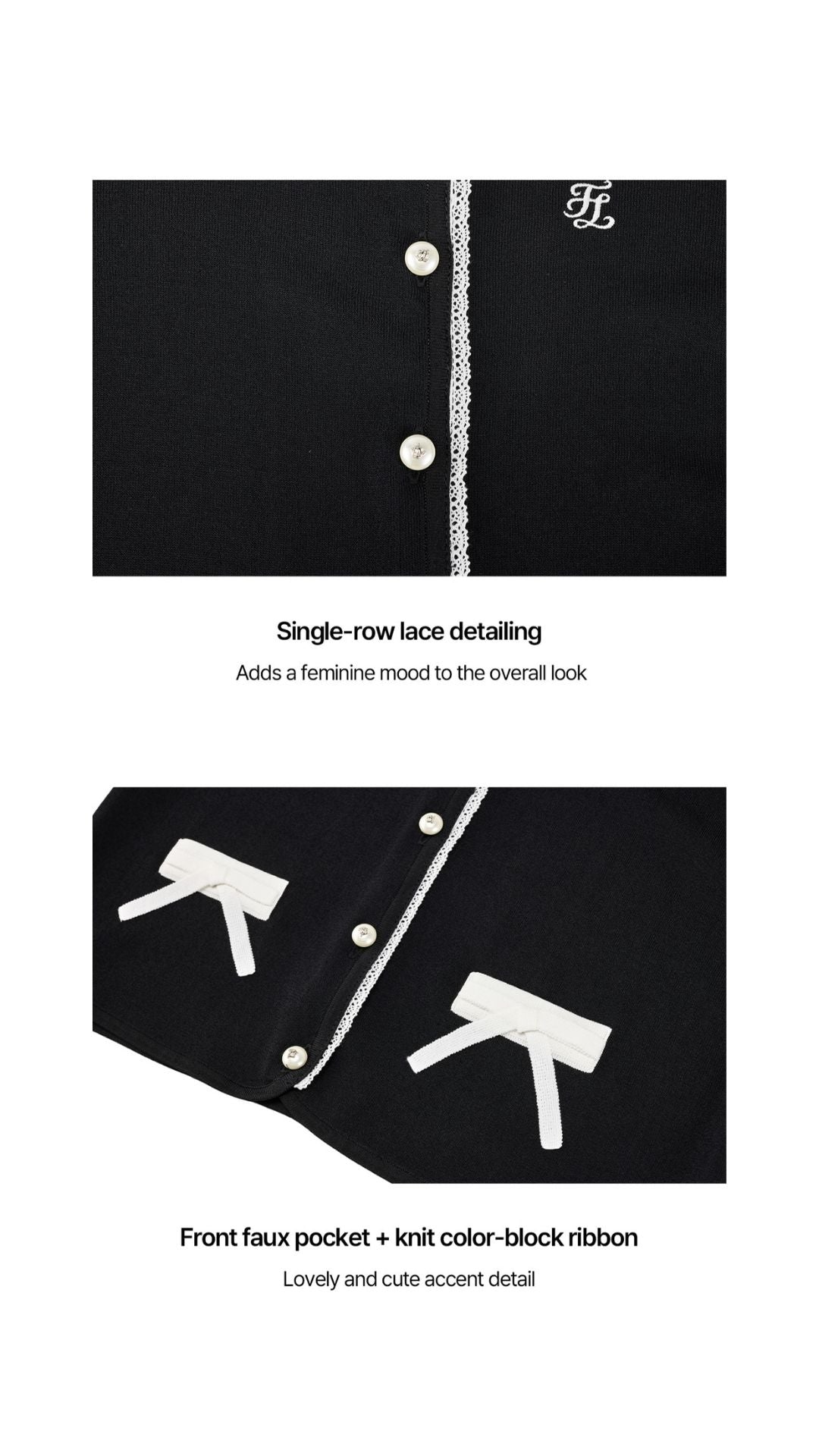2. The delicate crochet collar adds a cute and feminine touch, while the single lace detail enhances the feminine " " style. The ribbon detail on the pocket adds a cute and charming touch to this cardigan.