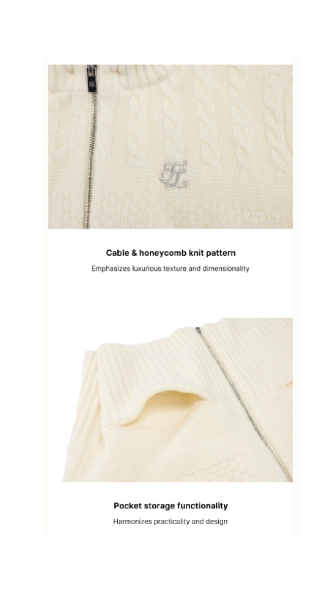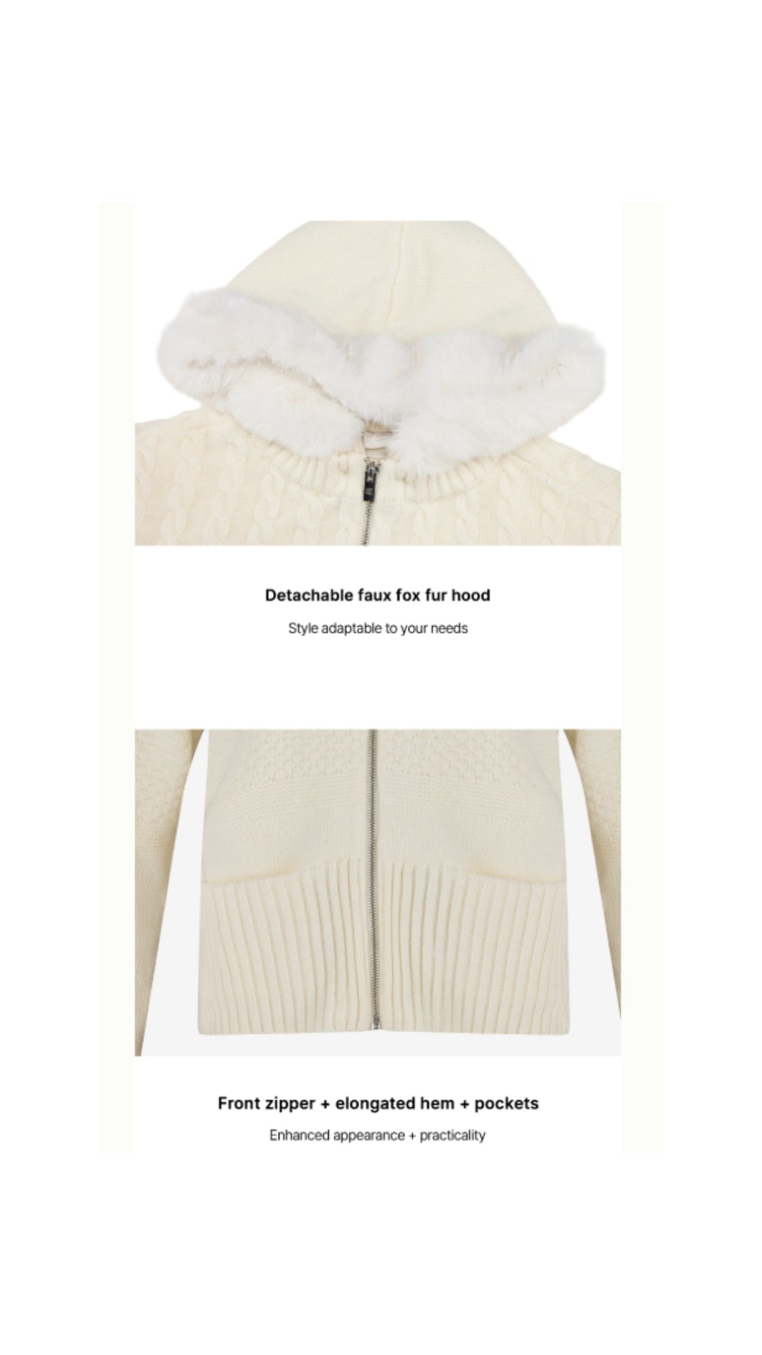 Fur Hooded Zipup Windproof Cardigan (Ivory)