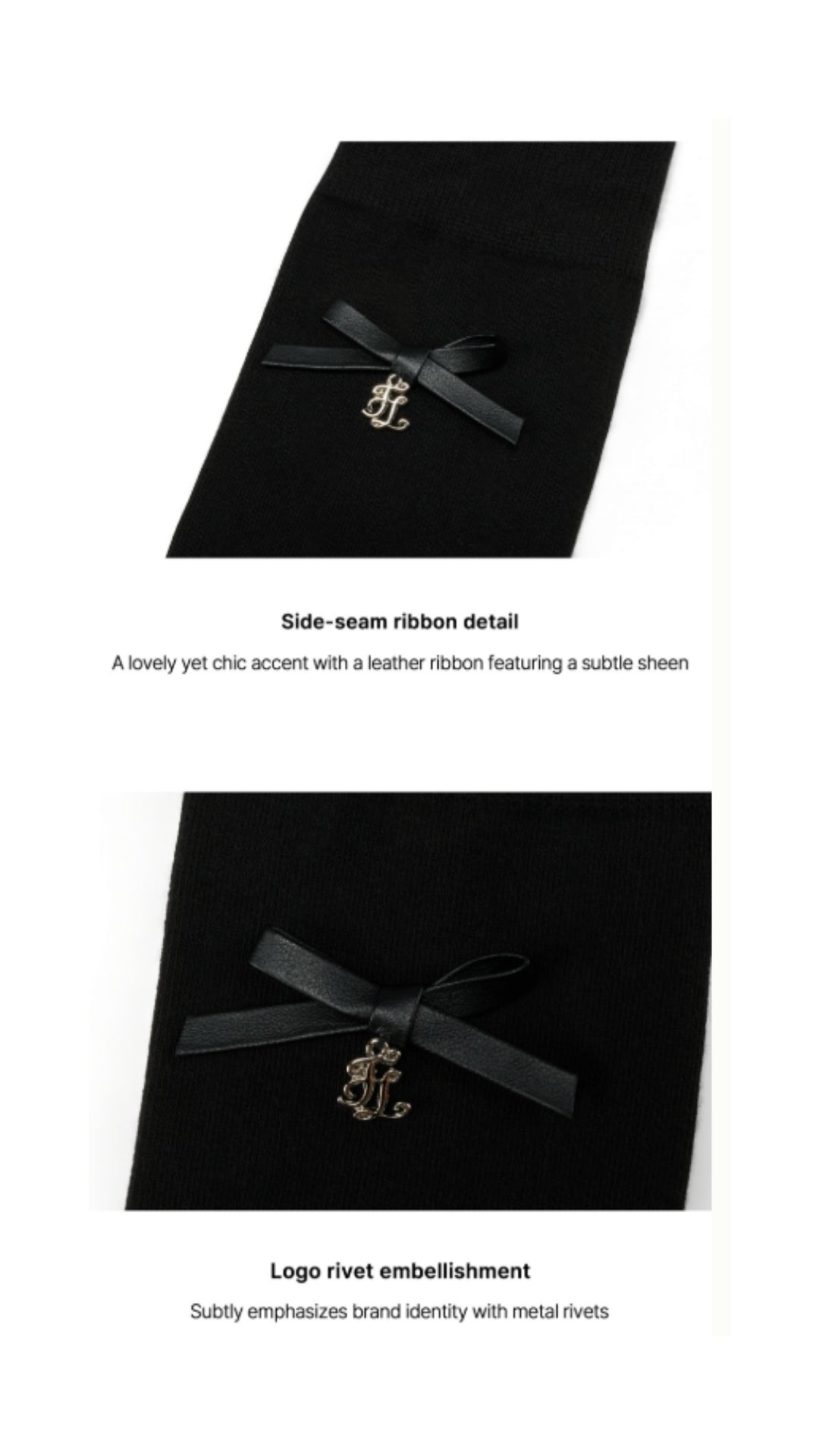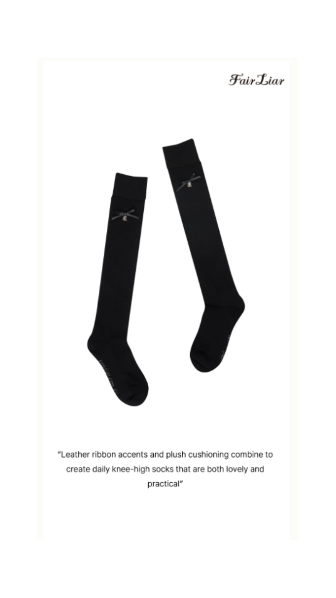 Leather Ribbon Knee-socks (Black)