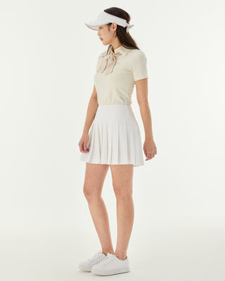 [FL Signature] Pearl & Bead Flare Pleated Skirt (Pink)