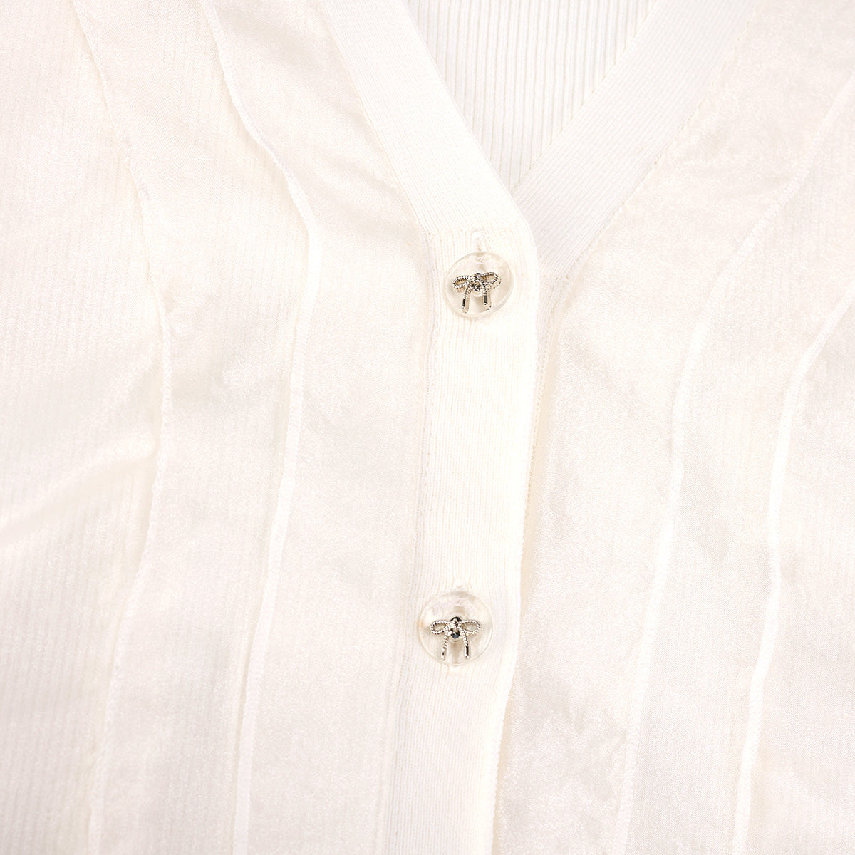 Organza V-neck cardigan (White)