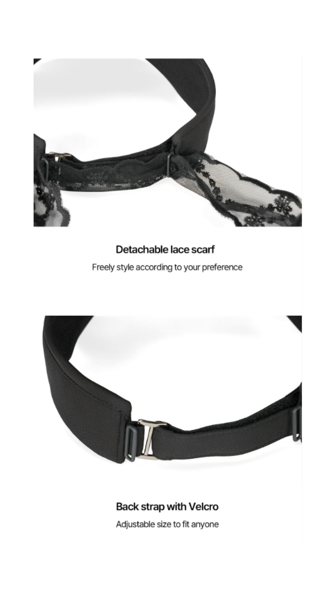 • Removable lace scarf for various styles