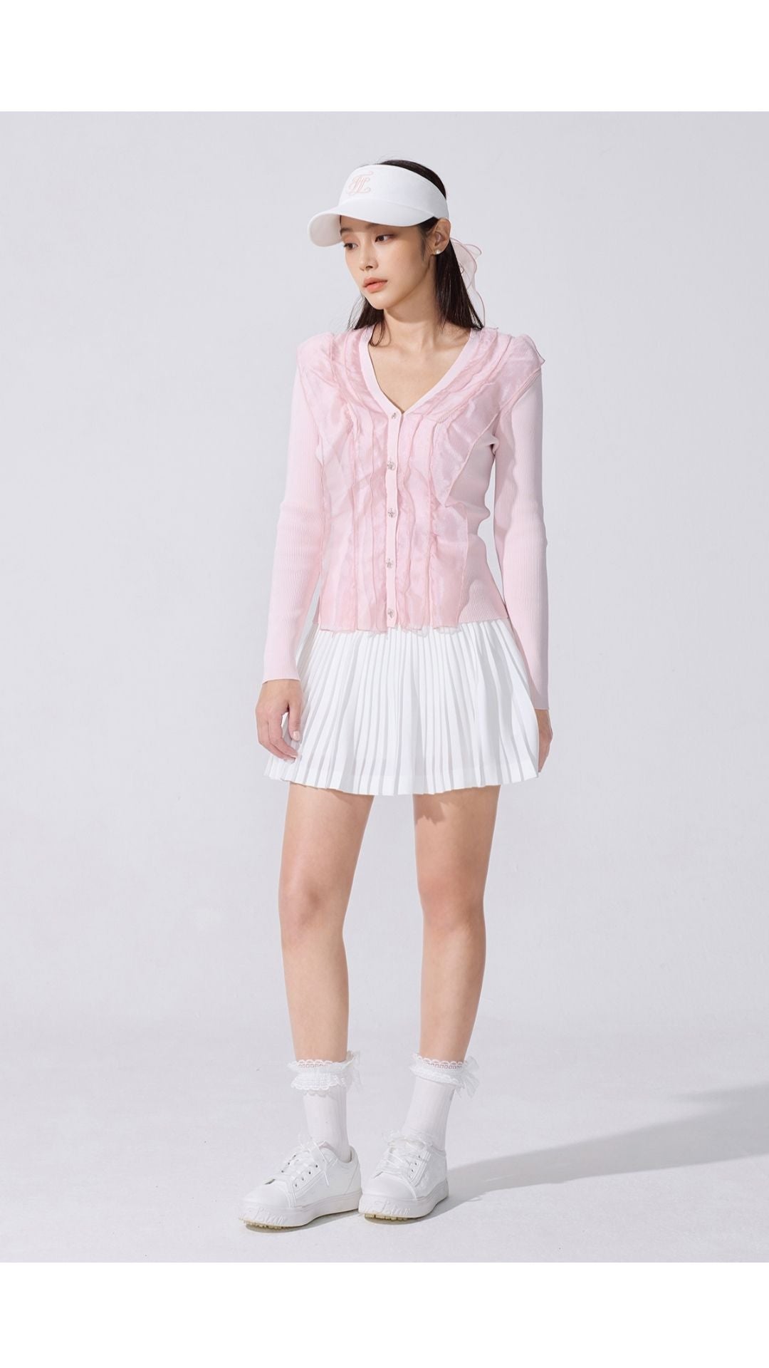 Organza V-neck cardigan (White)